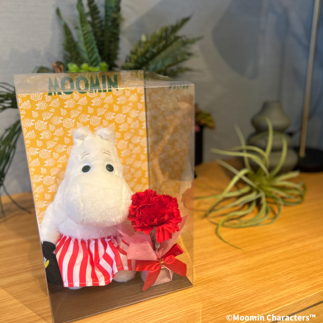 「MOOMIN SHOP 楽天市場店」で販売するオリジナル母の日ギフト第二弾は、ぬいぐるみフラワーギフト(計3種)とボックスフラワーギフト(計2種)です。ぬいぐるみフラワーギフトは、「ムーミン」に登場する各キャラクターのぬいぐるみとアーティフィシャルフラワーのカーネーションをセットにしたギフトです。また、ボックスフラワーギフトは、生花を長期間楽しめるように保存加工したプリザーブドフラワーのカーネーションを中心とする花々をボックスに敷き詰めたギフトです。ボックスには「MOOMIN SHOP 楽天市場店」限定のデザインを施しています。
