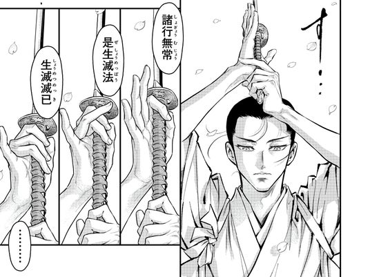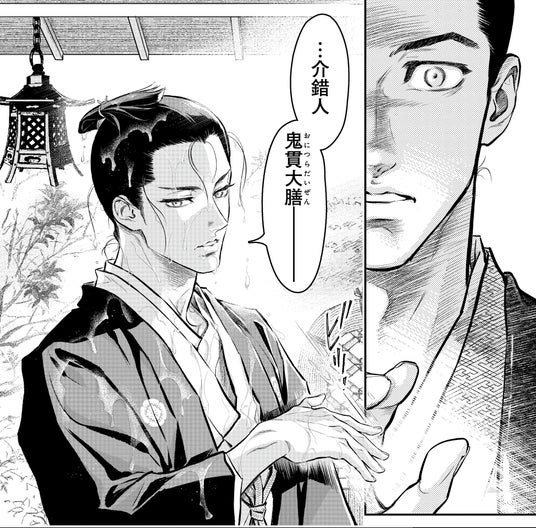ずっと時代小説並みのストーリーがあるBLを描きたくて、でも業界プロトコル的にはそういうものはやはり難しく自主作成して配信会社に持ってこうかと思ってたら、新潮社の編集 I 氏という拾う神が現れて「天稟」の連載が実現しました。青年誌デビューしてすぐ連載で山田浅右衛門を描きましたが、その時「閏六代」浅右衛門・吉貞という人がすごく気になって…それを今こうして時代BL作品として皆さんにお届け出来て幸いです。