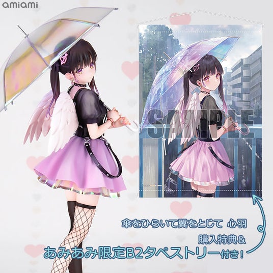 大網株式会社(本社・東京都文京区)が運営するホビー通販大手「あみあみ」では、メーカー「GOLDENHEAD+」より、『傘をひらいて翼をとじて 心羽 1/7スケール 完成品フィギュア』を、あみあみ限定特典「B2タペストリー」付きで現在発売中です。製品ページはこちら: