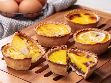 平飼いの純国産鶏の卵を使用した、濃厚な味わいのエッグタルト。