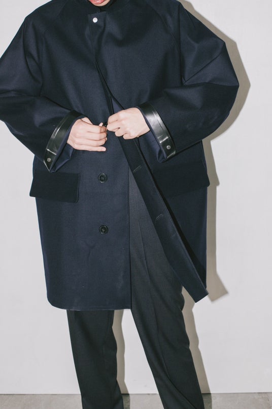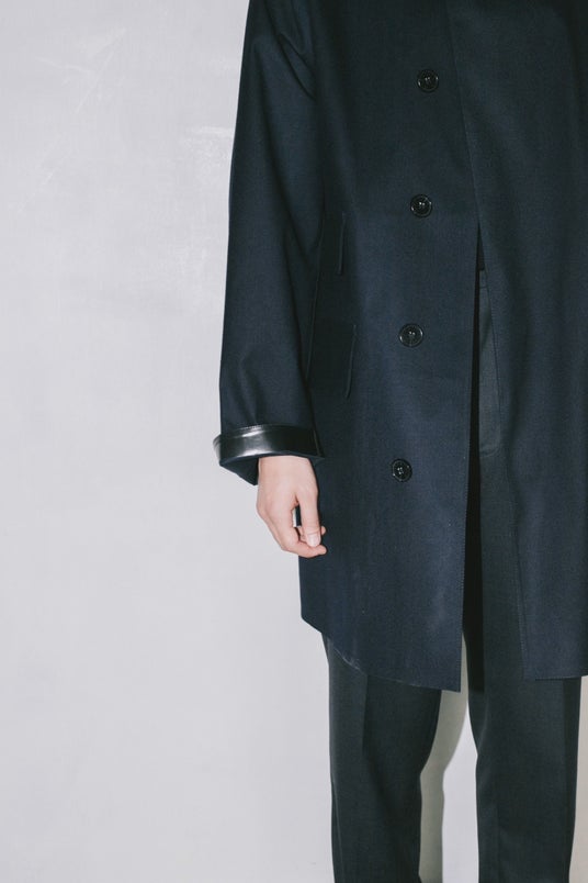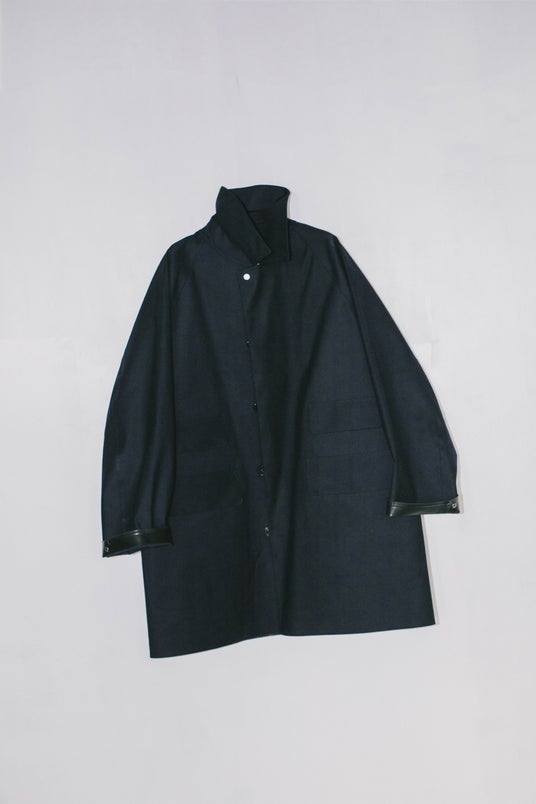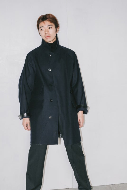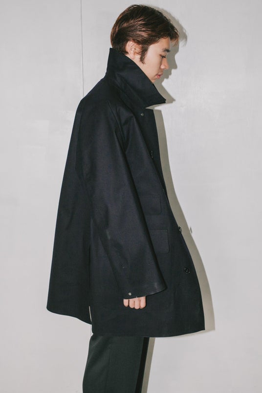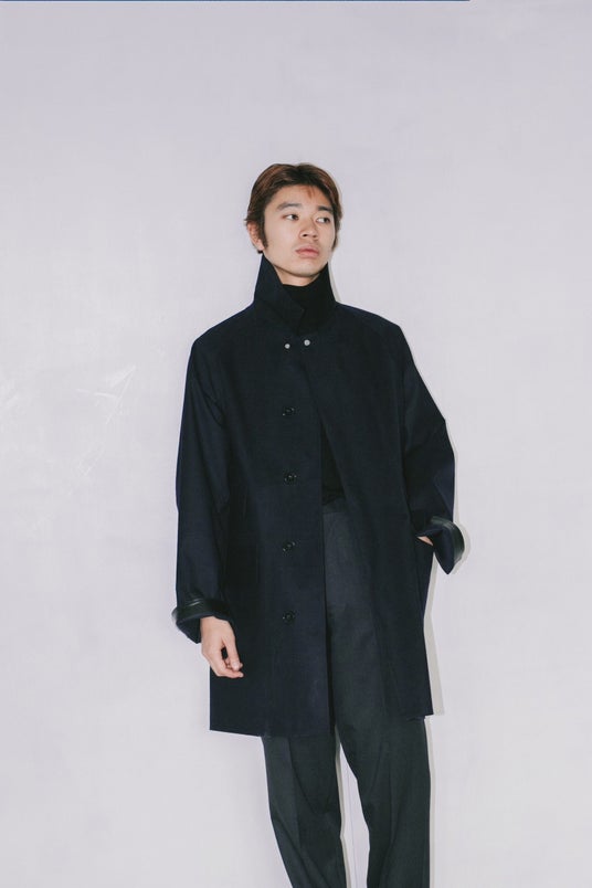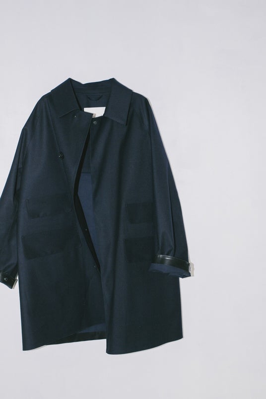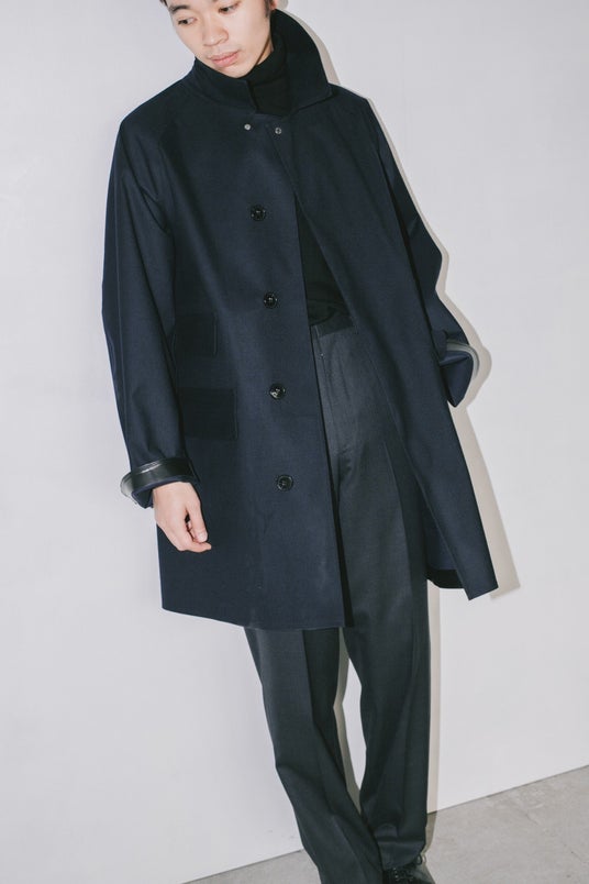 特徴はマルチポケット。ただポケットを多くしたのではなく、過去にフランスのメゾンブランドが展開していたマッキントッシュ製コートの片側チェンジポケットを、そのままシンメトリーにした。トップボタンもそのコートと同じスナップボタンを採用。歴史の中に存在したディテールを、一定の制約の中で組み合わせながら、単純に着やすく、魅力的なアウターとして形にする。