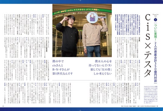 メディア取材は基本的にお断りのレジェンド投資家・cisさん(資産270億円)と、100億円投資家・テスタさんの対談も実現!
