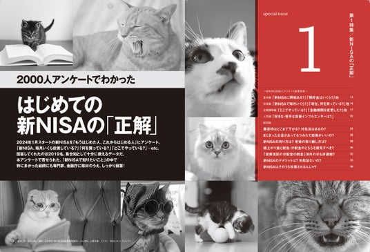 巻頭特集は「はじめての新NISAの『正解』」。新NISAで毎月いくら投資してる? 今、何を買っている? どの金融機関でやっている? 既に新NISAを始めた人・これから始める人、2000人へのアンケート結果を大発表。