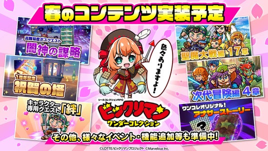 株式会社マーベラス(代表取締役社長:照井 慎一/所在地:東京都品川区)は、シールコレクションRPG『ビックリマン・ワンダーコレクション』にて「ビックリマンの日記念 ワンコレ総選挙」が2025年4月1日に開催されたことをお知らせいたします。また併せて「春のコンテンツ実装予定」を公開、「ちょこセレガチャ」を開始いたしました。