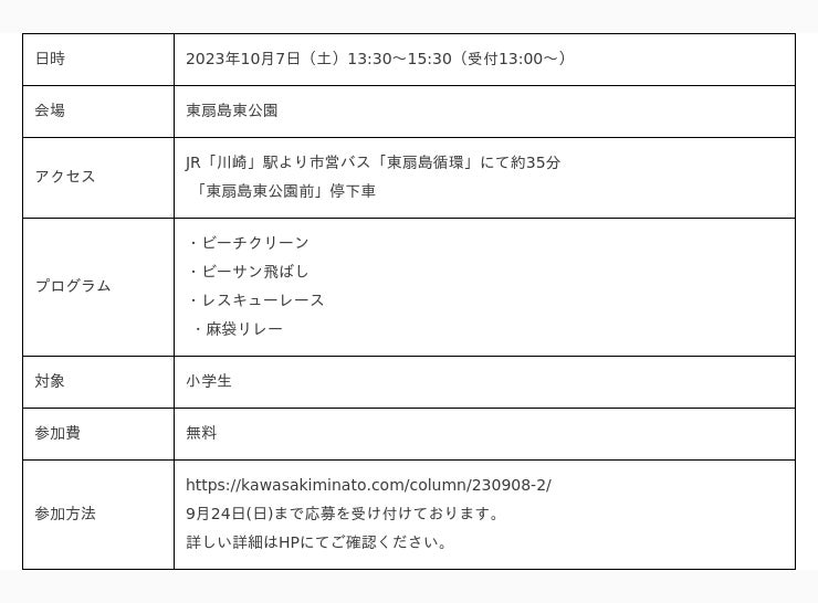 2023年10月7日(土)<東扇島東公園 かわさきの浜>