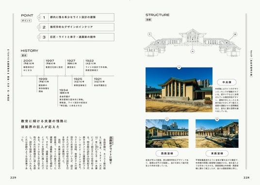 本書は東京にある国宝・重要文化財建築のデータを網羅する唯一の書籍で、室町時代の国宝・正福寺地蔵堂から1964年竣工の代々木競技場まで「文化財建築」をテーマに、80件以上を解説するビジュアル書籍です。掲載の物件には一部非公開のものもありますが、基本的に年間を通して気軽に訪問できるものばかり。もしかしたら、通勤や通学の途中で素通りしている建築があるかもしれません。本書ではそんな名建築の数々を優しく楽しい文章と美しいビジュアルで解説し、「なぜ文化財指定がなされたのか?」がよく分かります。また、ペリー来航による開国から文明開化、大正時代の関東大震災、そして東京大空襲など、激動の歴史をたどった不死鳥都市・東京を“建築”という観点からも学び直すことができます。