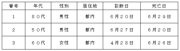 都内で新型コロナウイルスに感染した方が死亡されましたのでお知らせします。