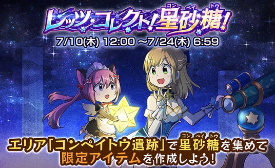 アクションパズルRPG『ケリ姫スイーツ』において、“星砂糖”を集めてさまざまなアイテムを作成できる新イベント「レッツ・コレクト!星砂糖!」の第1弾を、2025年7月10日(木)より開催いたします。