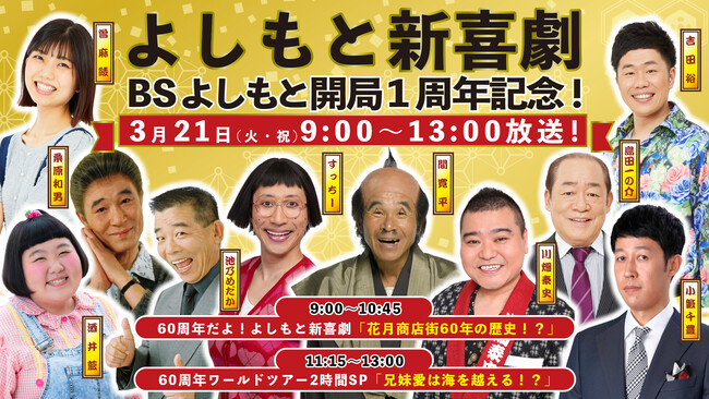 BSよしもと(BS265ch)は2023年3月21日(火・祝)で開局1周年を迎えます。3月21日(火・祝)当日には開局1周年を記念した特番を放送いたします。
