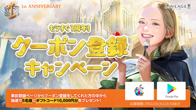 1.事前登録ページ( https://lineage2m.ncsoft.jp/lp/202203_preorder )より、 事前登録してクーポンを発行