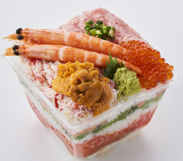 うに、かに、いくらなど豪華海鮮を重ねた人気のミルフィーユ寿司がクリスマスデコレーションで登場。