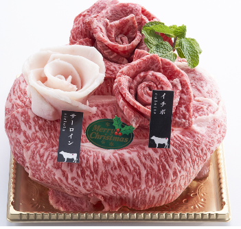 3種の国産牛焼肉用と人気のハンバーグが入ったお肉のケーキ!(サーロイン焼肉用、モモ焼肉用各200g、イチボ焼肉用100g、合挽ハンバーグ150g2個)