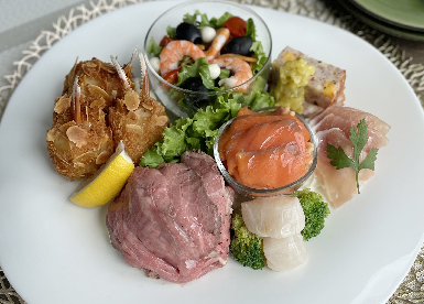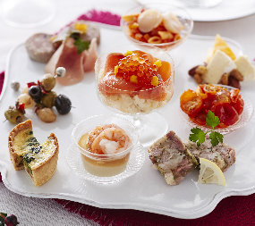 目にもおいしい風味豊かな品々を詰め合わせた、華やかな前菜プレート。色々な味わいを少しずつ楽しんでいただけます。