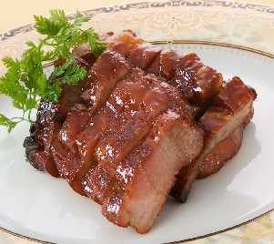 銀座アスター特製のタレに漬け込み、広東式に焼き上げたチャーシューです。
