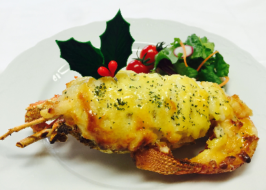 ロブスターの身にベシャメルソースを合わせ、更にチーズソースのせて焼き上げました。