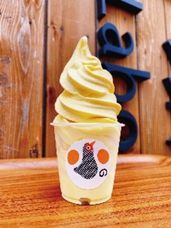 七飯〈小野養鶏場直営 里山楽房〉プリンソフトクリーム(1個) 400円