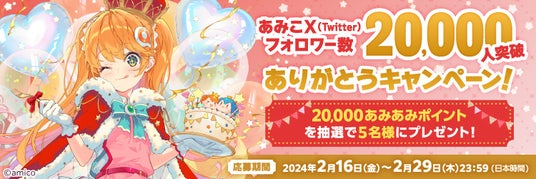 大網株式会社(本社・東京都文京区)は、自社が運営するホビーショップ「あみあみ」イメージキャラクターあみこのX(Twitter)アカウント20,000人突破を記念して、2万円分のお買い物ができる20,000あみあみポイントを抽選でプレゼントするキャンペーンをX(旧Twitter)で開催中です。■あみこアカウントはコチラ