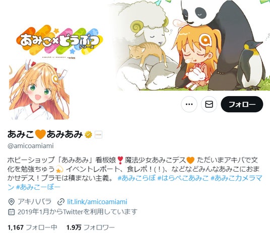 『あみあみ』のイメージキャラクター「あみこ」が、ホビー情報から日常の様子までTwitterで情報発信中。画像&動画で紹介するココだけのホビー情報は、業界必見!?