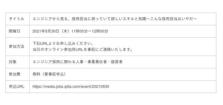株式会社エイチームのグループ会社であるIncrements株式会社(本社:東京都港区、代表取締役社長:柴田健介)は、2021年9月30日(木)に無料オンラインセミナー「エンジニアから見る、採用担当に持っていて欲しいスキルと知識~こんな採用担当はいやだ~」を開催します。