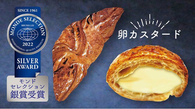 新感覚「カリッ、サクッ、トロッ」食感のシュークリームみたいなクロワッサン。 数あるクロワッサンの種類の中で人気No.1の卵カスタードはモンドセレクション銀賞を受賞しています。