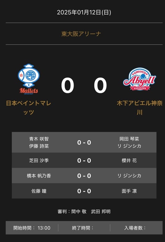ノジマTリーグ 2024-2025シーズン 公式戦 1月12日開催 日本ペイントマレッツ vs 木下アビエル神奈川 対戦オーダー発表