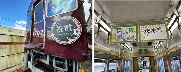 能勢電鉄では、この春から新たな一歩を踏み出す沿線のお客様へ向け、車両を祝福メッセージで彩った卒業列車“祝電(しゅくでん)”(1編成)を、期間限定(2月18日(土)~3月31日(金))で運行します。