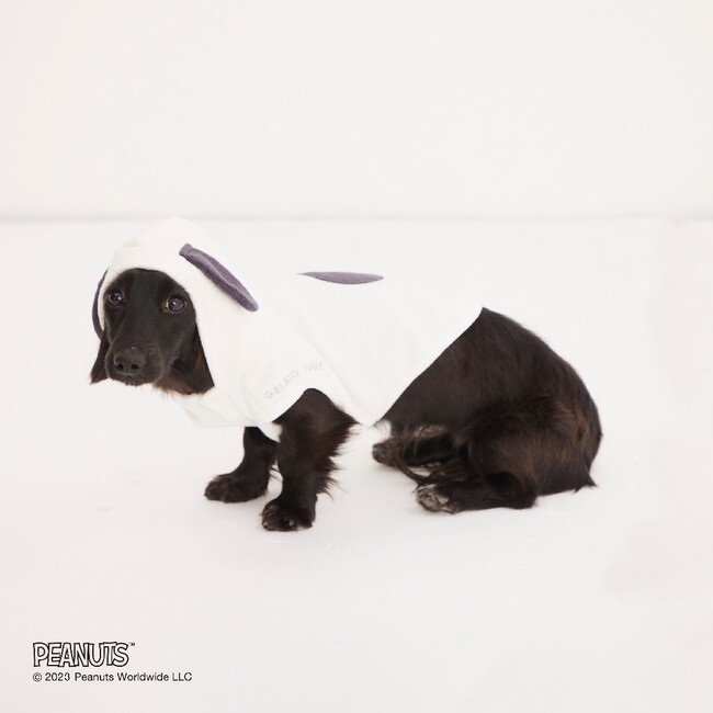 フードにはスヌーピーの耳、背中には黒ぶちの模様のデザインも。