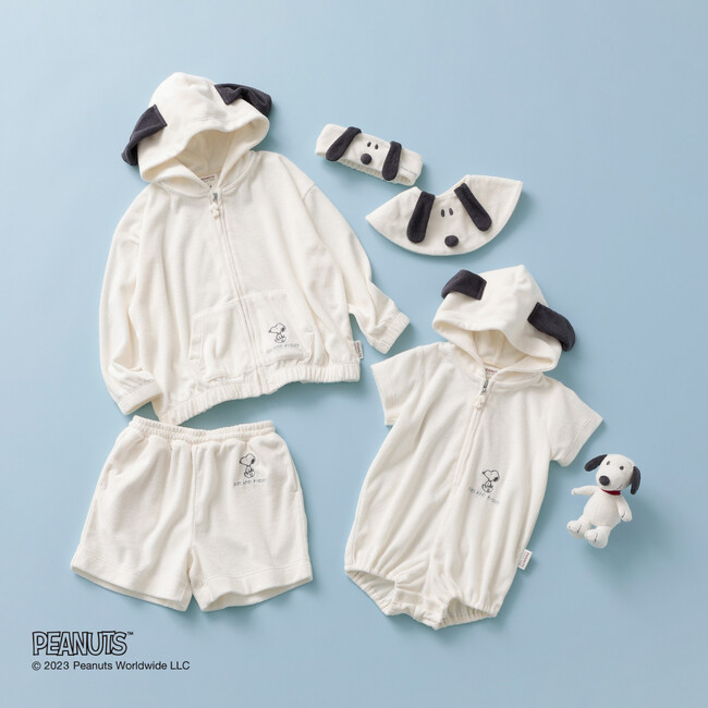 袖口や裾をしぼった、ころんと丸みのあるシルエットで、大好きなスヌーピーになりきることができます。