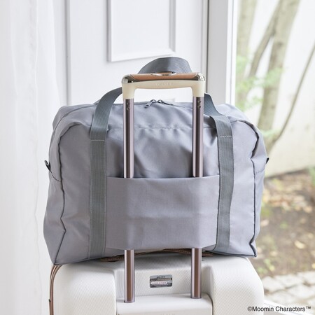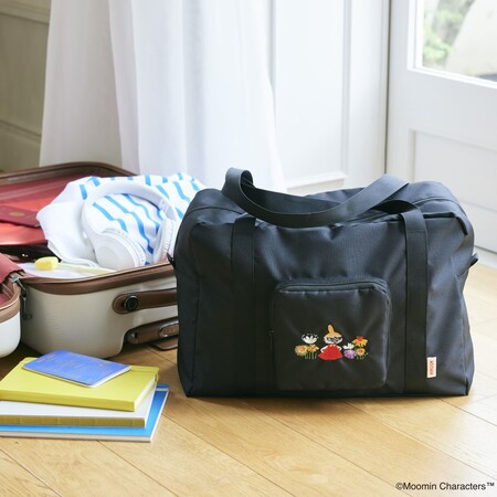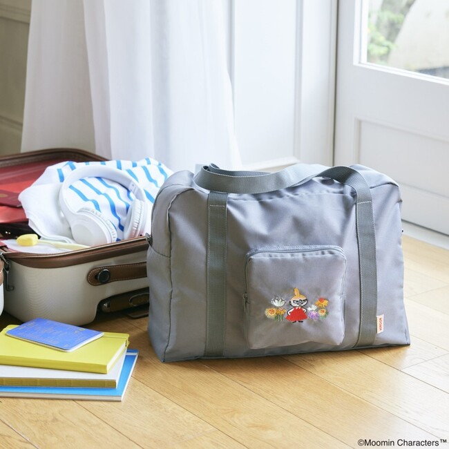 ビッグなボストンバッグは、ポケット部分に施されたリトルミイの刺しゅうが映えるデザイン。グレーとブラックの2色で、約25Lの大容量かつ軽量なので、旅行はもちろん、アウトドアやジムのスポーツバッグなどマルチに活躍します。背面にはループ付きで、キャリーケースにセットできるのが嬉しいポイント。小さく折りたたんで普段使いのバッグに入れておけば、荷物が増えたときのサブバッグにもなる心強いアイテムです。