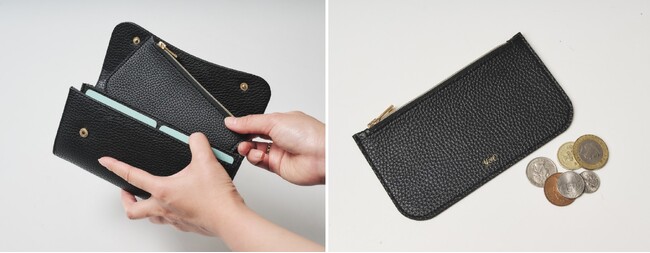 【サイズ(約)】財布:縦8.5×横19×厚さ2.5cm、コインポーチ:縦8×横15.8cm