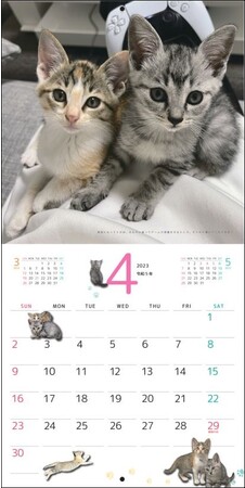 また、4月はじまりのこのカレンダーは2匹が子猫から成猫に成長する過程を1年間楽しめる仕様になっており、新しい年度のはじまる4月から2匹と共に成長してゆく気持ちになれます!