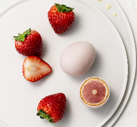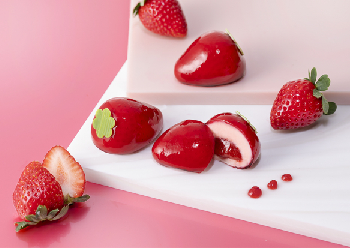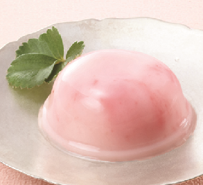 なめらかな口あたりに甘酸っぱいいちごソースがアクセント。やさしい甘さのいちごムースゼリーです。