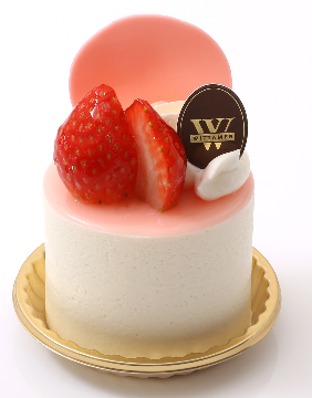 コクのある桃のフロマージュムースにみずみずしい桃と苺のジュレを合わせた苺ケーキ!