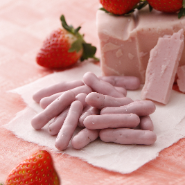 甘酸っぱいイチゴ風味の味わいのチョコレートを、かりんとうに丁寧に塗り重ねました。