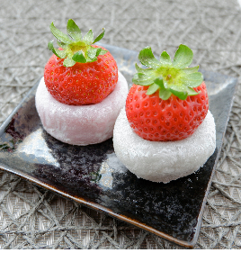いちごの王様「あまおう」をまるごと使用したリッチな和風スイーツ!ピンクは生地も苺味。