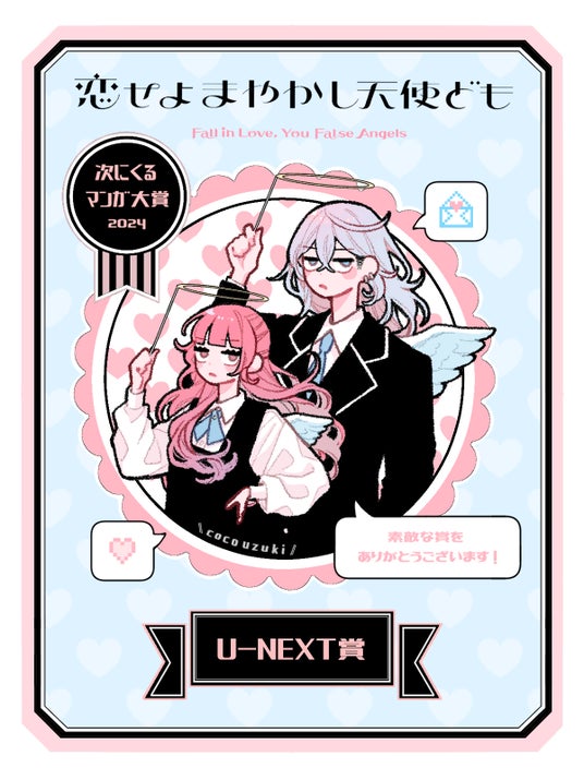 USEN&U-NEXT GROUPの株式会社U-NEXT(本社:東京都品川区、代表取締役社長:堤 天心)が運営する動画配信サービス「U-NEXT」は、「次にくるマンガ大賞 2024」の特別賞である「U-NEXT賞」に、コミックス部門『恋せよまやかし天使ども』(講談社)、Webマンガ部門『しれっとすげぇこと言ってるギャル。―私立パラの丸高校の日常―』(集英社)を選出いたしました。また、受賞2作品のほか、各部門の上位20作品を無料&試し読みできるキャンペーンを8月29日(金)から期間限定で実施いたします。