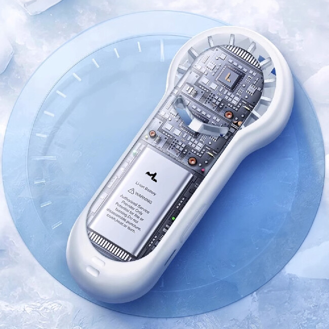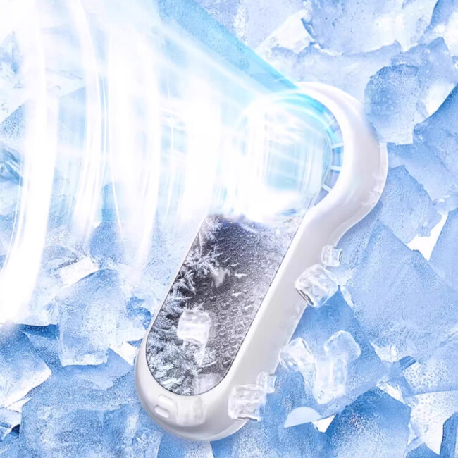 「Frozy(フロジー)」は氷のように冷たくなる冷却プレートが全面についた、高性能ハンディファン。