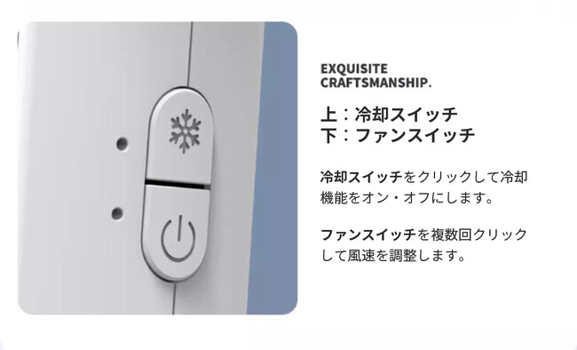 強力な冷却機能と3段階調整可能の風速を備えて、最大風速は驚きの秒速5.8mに至ります!