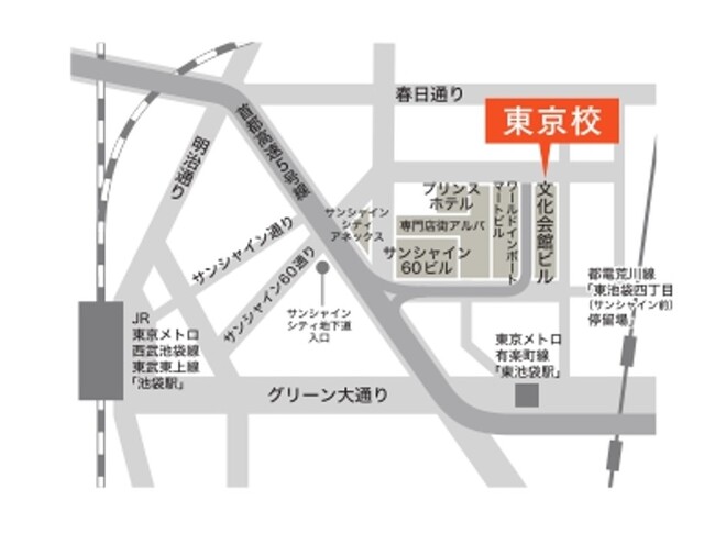 拠 点 :東京校(東京都豊島区東池袋3-1-4 サンシャインシティ文化会館ビル7F )