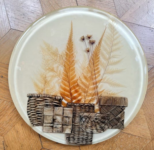 「花とギター flower&guitar」レジンの鍋敷き カゴモチーフ ◎4階 イベントテラス ◎8/28(水)→9/3(火)〈最終日は午後6時まで〉