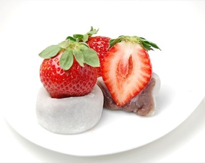 福岡県産のあまおうを贅沢に使用したインパクト抜群のいちご大福です。甘さ控えめなこしあんとの相性も絶妙です。