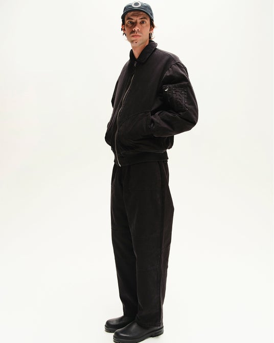 BLACK PACKAGE と題し、FLIGHT JACKET 、PHATIGUE WORKER PANT、ARCH HOODED SWEAT、O SIXPANEL HATの計4アイテムをフェードしたブラックに統一して展開。