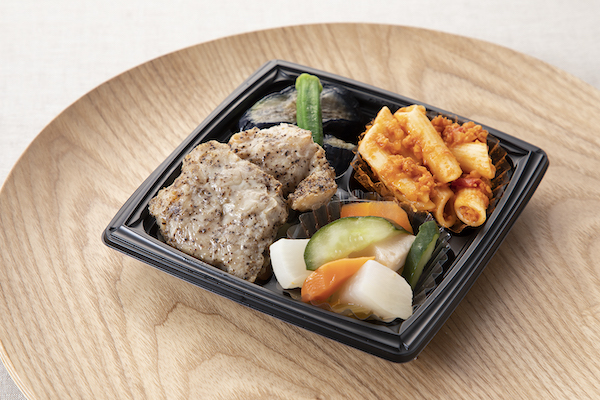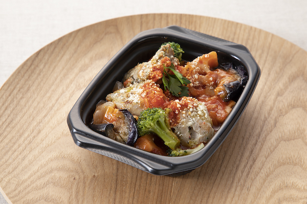 ↑グリルチキンと5種野菜のトマト煮 税込648円