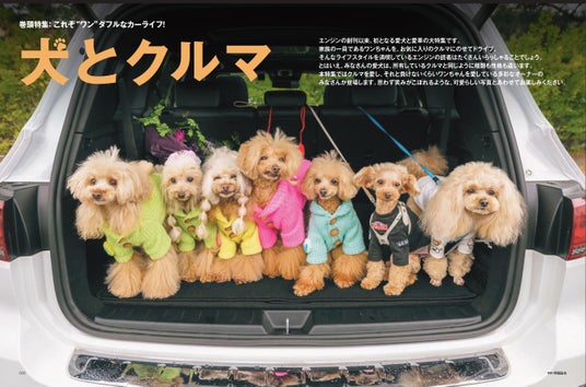 クルマやファッションを中心とした新潮社のライフスタイル誌「ENGINE」。2000年の創刊以降、クルマに関連した様々な特集記事を手掛けてきましたが、3月26日発売の最新号では、25年の本誌の歴史の中でも初めてとなる「犬とクルマ」の巻頭特集を組みました。