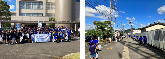 試合後には「会場周辺一斉ごみ拾い」を開催。選手と一緒に多くの子供たちがごみ拾いに参加しました。