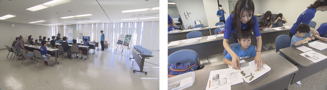 漂着する海洋ごみで、目にする事も多い漁具。講師にサカイオーベックス株式会社水産資源事業部の青山勧氏を招き、漁具をリサイクルした糸を“くろめ”という海藻を使用し染める体験を行いました。体験だけではなく、海藻や海の環境についても青山氏からお話があり、参加した親子で真剣に話を聞く姿が印象的でした。