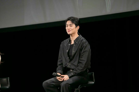 さらに、ドラマ登場人物の相関図をキム・ジウンとぺ・イニョクが自ら解説し、4人がそれぞれの役づくりについても語ってくれた。父である現国王の密命を受け、「龍天桜(ヨンチョンル)」を探るため見習いとなるイ・ウンを演じるぺ・イニョクは「王宮にいる時と「龍天桜」にいる時と違いを演じ分けなければならないと思いました。そのために、言葉使いやトーンを重点的に意識するようにしましたね」。殺された父の復讐のために「龍天桜」に入った男装ヒロインのホン・ドクス役のキム・ジウンは「私のキャラクターは男装している女性。ドラマ最初の方のシーンでは、メイクもあまりしないで過ごしましたし、体重の管理もあえてしないようにしていたんです。なので、ちょっと丸々と大きくなって男性らしい部分が表現されていたのではと思います」。「龍天桜」の息子という正体を隠し見習いとなったチョン・ジュナを演じたチョン・ゴンジュは「僕は、現場でアドリブをしながら自由に演技するのを好むタイプなんです。なので、監督はジュナにもっと真面目で純粋なキャラクターを望んでいたと思うのですが、僕は自由奔放なジュナを演じてみたく、のらりくらりとしたちょっと太々しい姿になりました」。時代劇初挑戦のパク・ジェチャンが演じたのは、没落した実家の商団を再建するために「龍天桜」の見習いとなったコ・スラ。「まずは、時代劇をたくさん観ました。スラという人物は家族のために「龍天桜」で絶対に成功しなければならないという強迫観念に駆られているキャラクターじゃないですか。自分自身も練習生時代は、絶対にデビューしたいという熱い情熱を持っていました。そのことを重ね合わせながら、スラというキャラクターを作っていきました」と熱く語った。