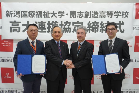 NSGグループの新潟医療福祉大学(以下、本学)は、2月6日(金)、高校生に対して医療系資格・職業についての理解を深める機会を創出し、将来地域社会に貢献する人材を発掘・育成することを目的に、開志創造高等学校と高大連携協定を締結しました。