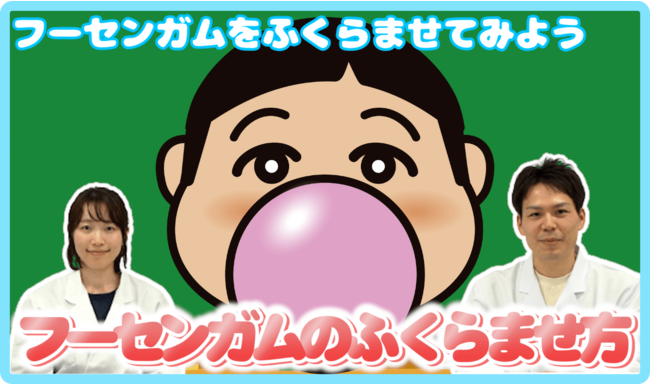 さらに、ロッテ研究員による、フーセンガムのふくらませ方を解説した動画も視聴できます。