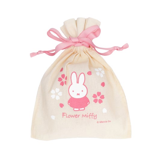 ミッフィーやさくらのモチーフなど6種のラムネとピンクや黄緑色など、さくらを彷彿とさせる4色の金平糖を、巾着に入れたセット商品です。コットンの生地にミッフィーとさくらをあしらった巾着は、金平糖とラムネを食べ終わったあとは、リップやミラーなどを入れて小物入れとしても使用できます。